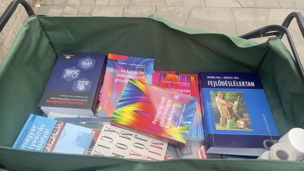 Az ELTE Bölcsészettudományi Karától, az Astoriáról indultunk, ahonnan egy kézikocsit húztunk el a minisztériumig, amelyben olyan könyvek voltak, amelyeket minden pedagógusnak, oktatási dolgozónak ismernie kell. A séta alatt Tóth Enikő, szervezetünk kampányigazgatója és Soltész Luca Flóra, az aHang kampányosa különböző beszélgetőpartnerekkel – Törley Katalin (Tanítanék Mozgalom); Merucza Tibor Alex (ADOM Diákmozgalom); Miklós György (Szülői Hang) – tárták fel az oktatás problémáit. Mindezt pedig élőben közvetítettük. Nézd vissza a teljes beszélgetést az aHang Facebook-oldalán!