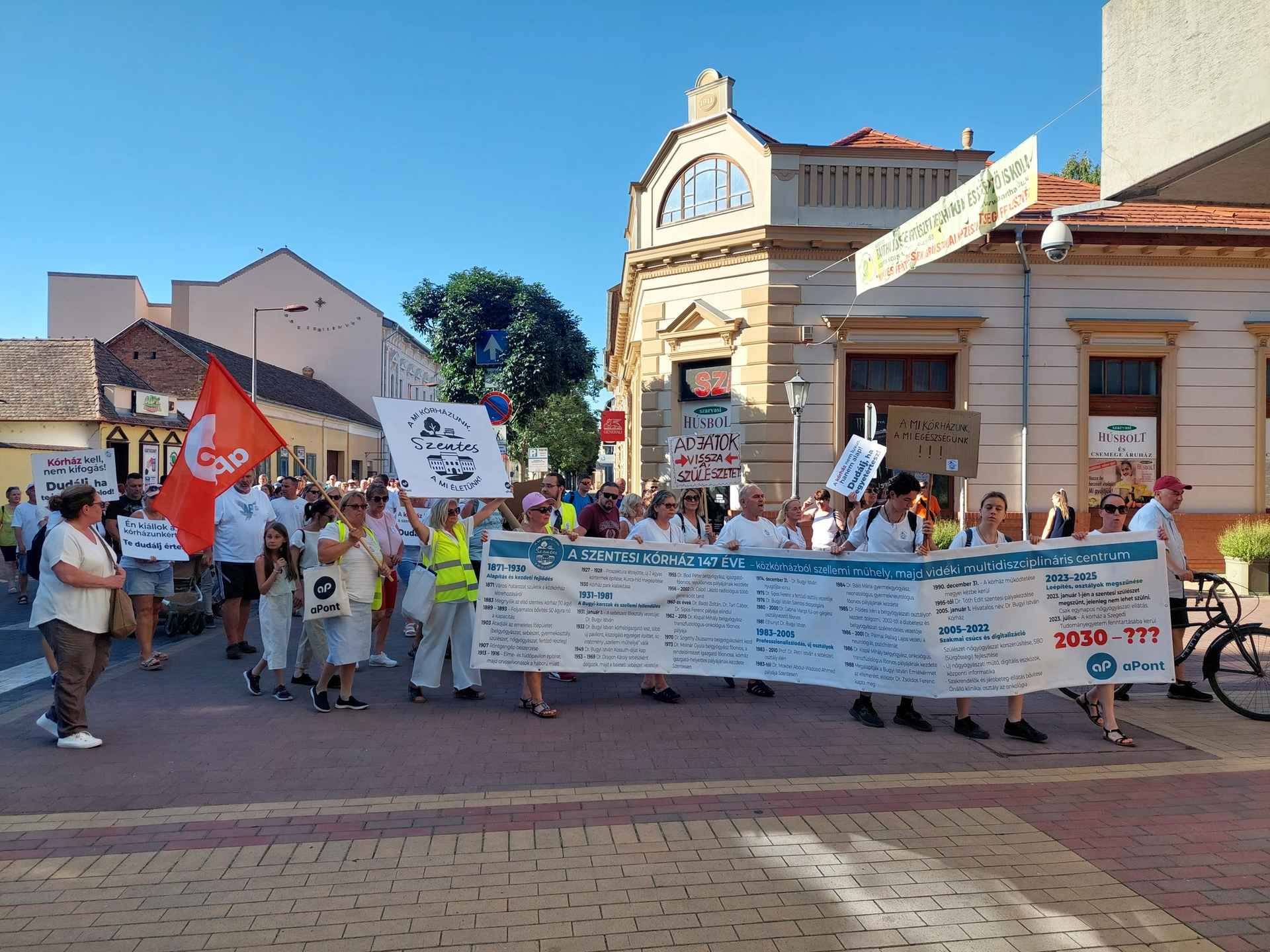 In Szentes, activists campaigned on the uncertain future of the local hospital, pressing its operator to inform residents about what to expect as the institution visibly declined. On July 1, National Healthcare Day, the local aPont held a silent march: more than 200 people walked from the hospital to Kossuth Square.