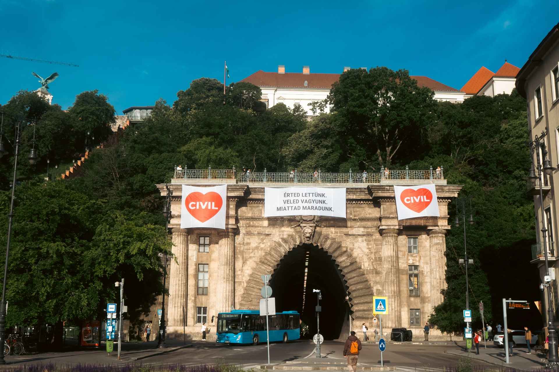 An unprecedented wave of unity began. We joined the joint statement initiated by Civilizáció, in which hundreds of civil society organizations and editorial teams declared: No country was ever built on blacklists. Shortly after, we took part in a spectacular action in Budapest, where we unfurled three massive banners at the Castle Tunnel. The banners displayed the civil heart symbol and the slogan of our joint stand: "We were created for you. We are with you. We remain because of you."